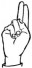 На ћирилици написано АНДРИЈА РУЧНОВ састоји се из 13 слова [?]. Исписано ћириличном једноручном азбуком за глувонеме: